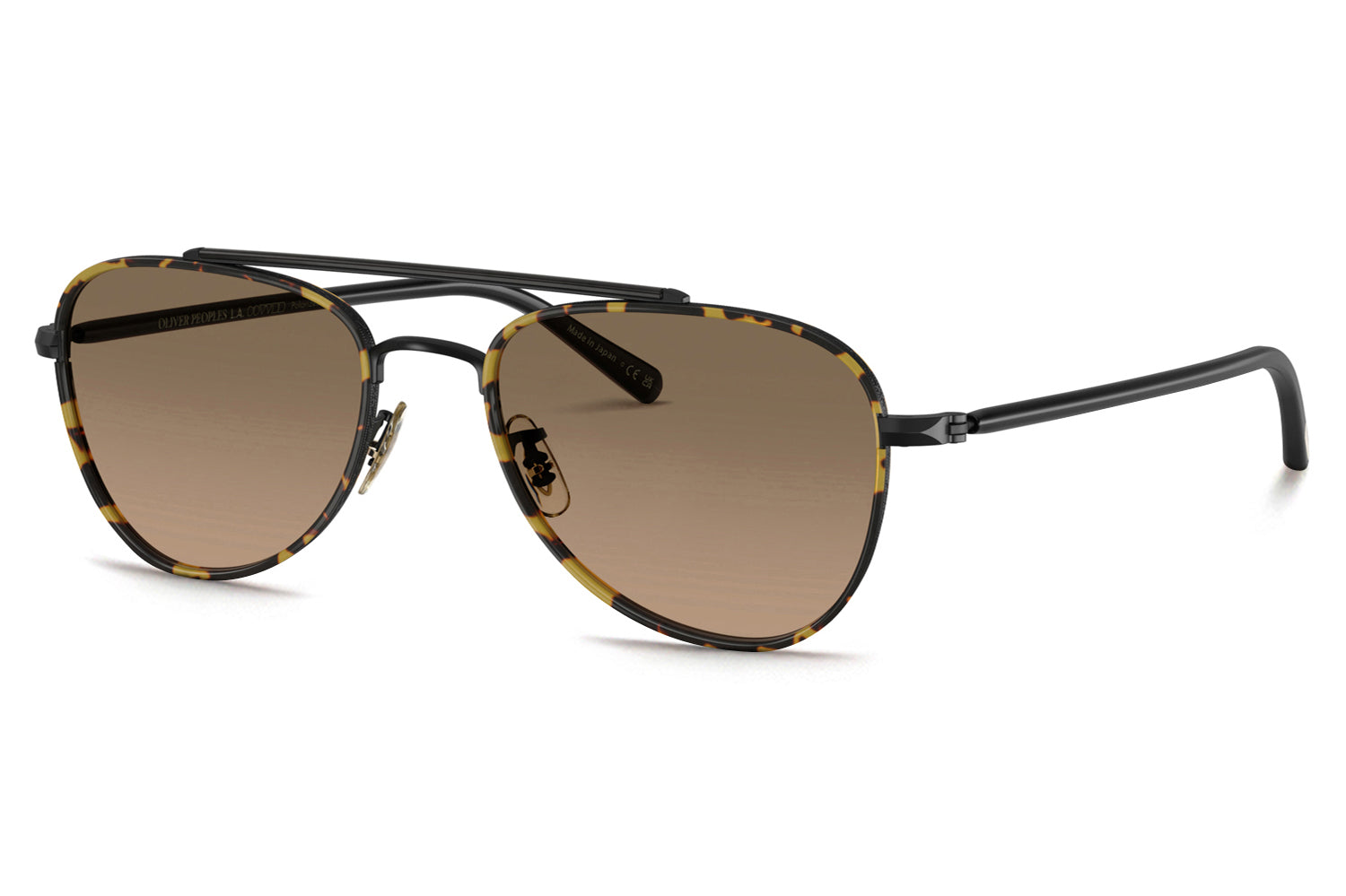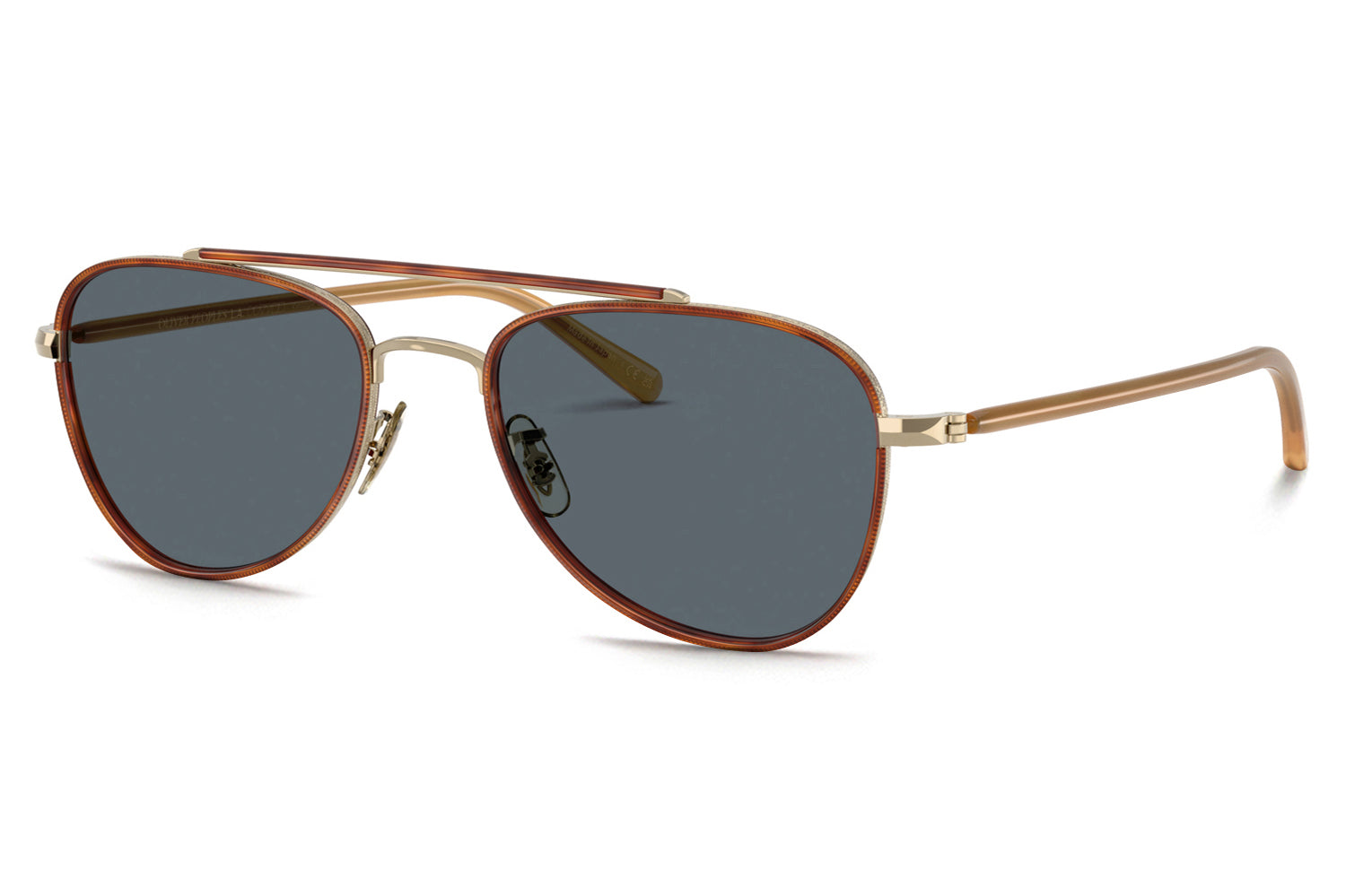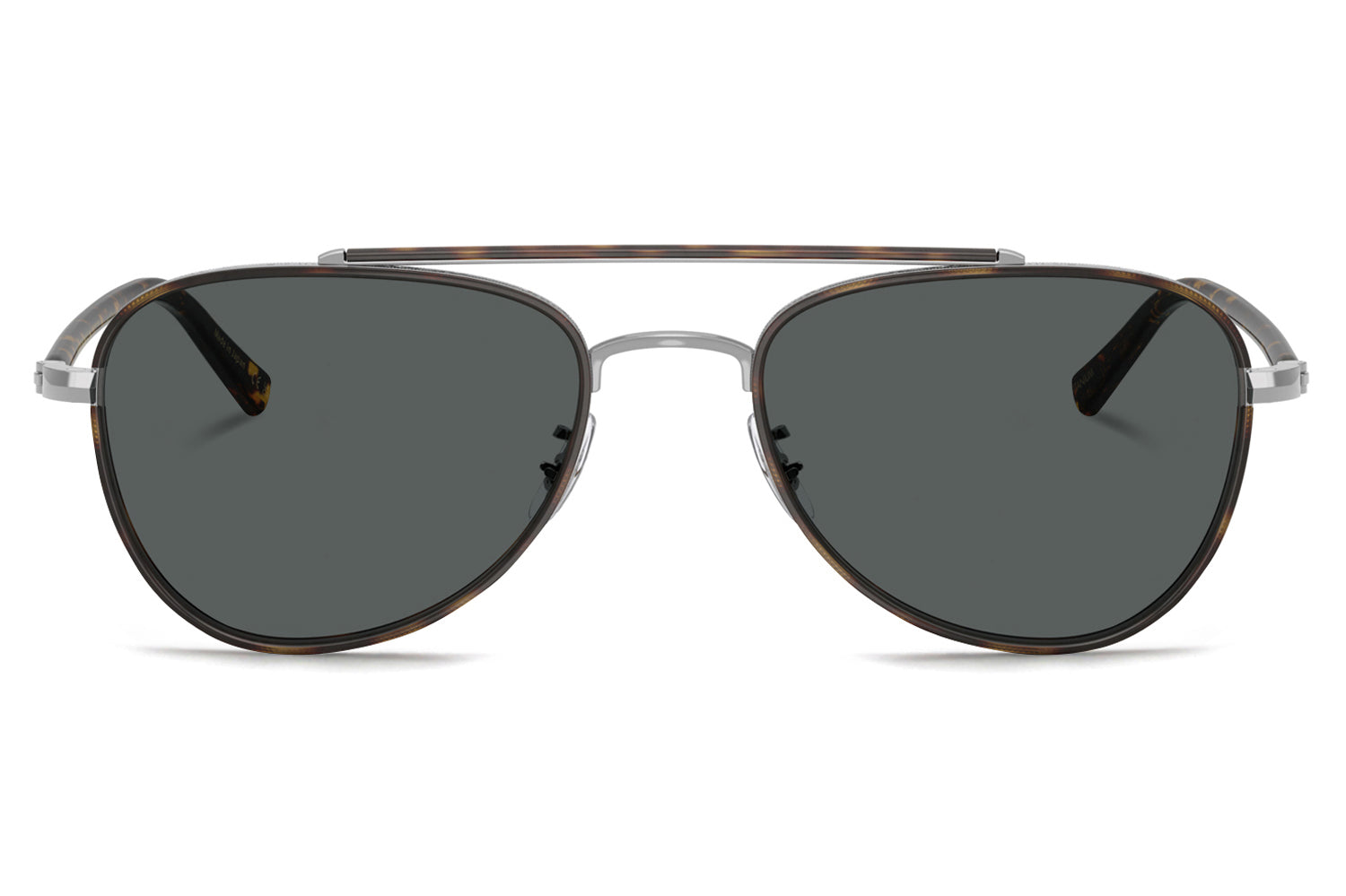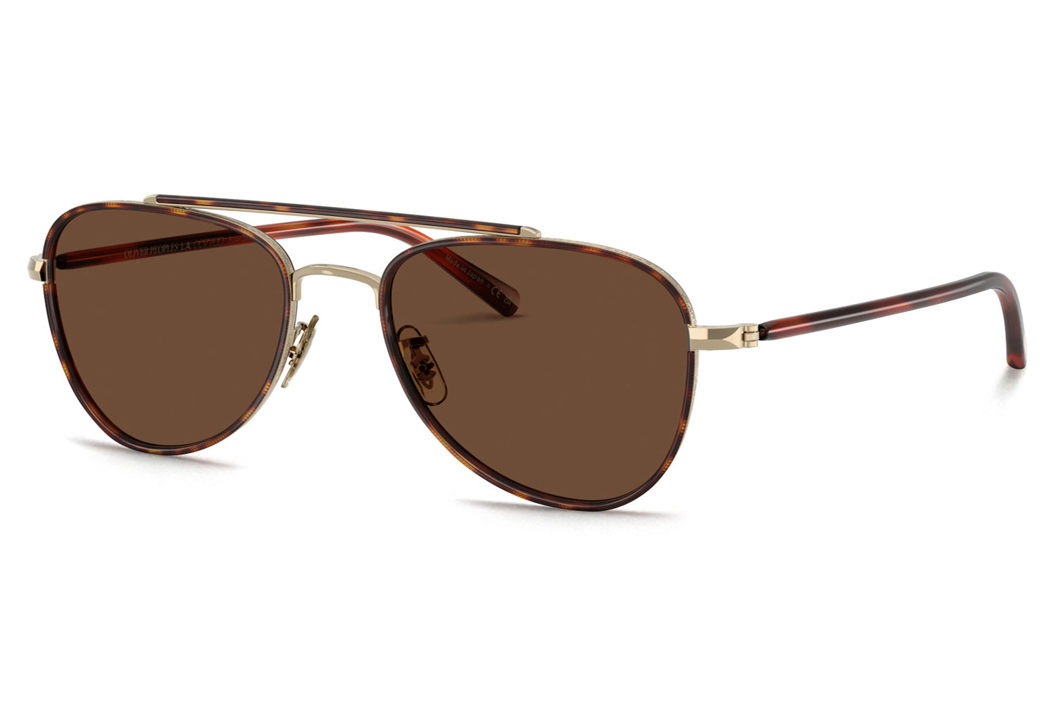 The Oliver Peoples // Sacoye (OV1372ST) is a teardrop titanium and acetate sunglass with a distinctive double-bar brow and rich tortoise accents. Born from Japanese craftsmanship, the thin acetate insert eyewire, tortoise-accented top bar, and refined acetate temple deliver an elegantly tailored, heritage-inspired silhouette. Lightweight titanium and premium acetate construction ensure enduring comfort and refined wear. These designer sunglasses blend classic aviator heritage with artisanal precision, perfect for the discerning wearer seeking a beautifully crafted, tailored elegance. Includes Oliver Peoples box, case, cleaning cloth, and 1-year manufacturer warranty.