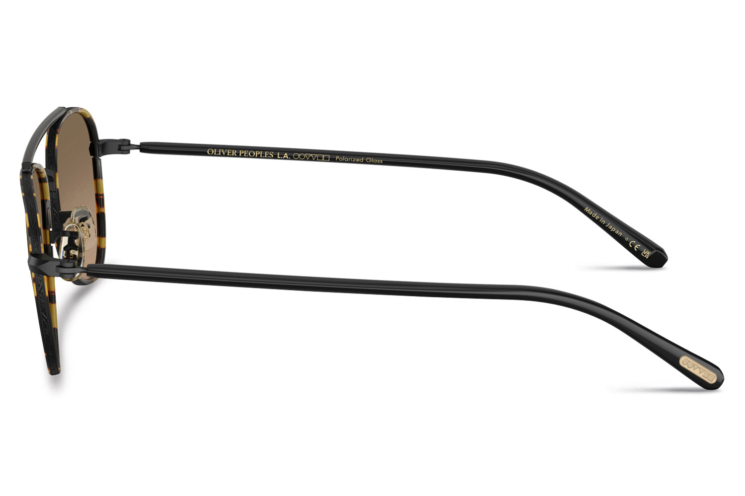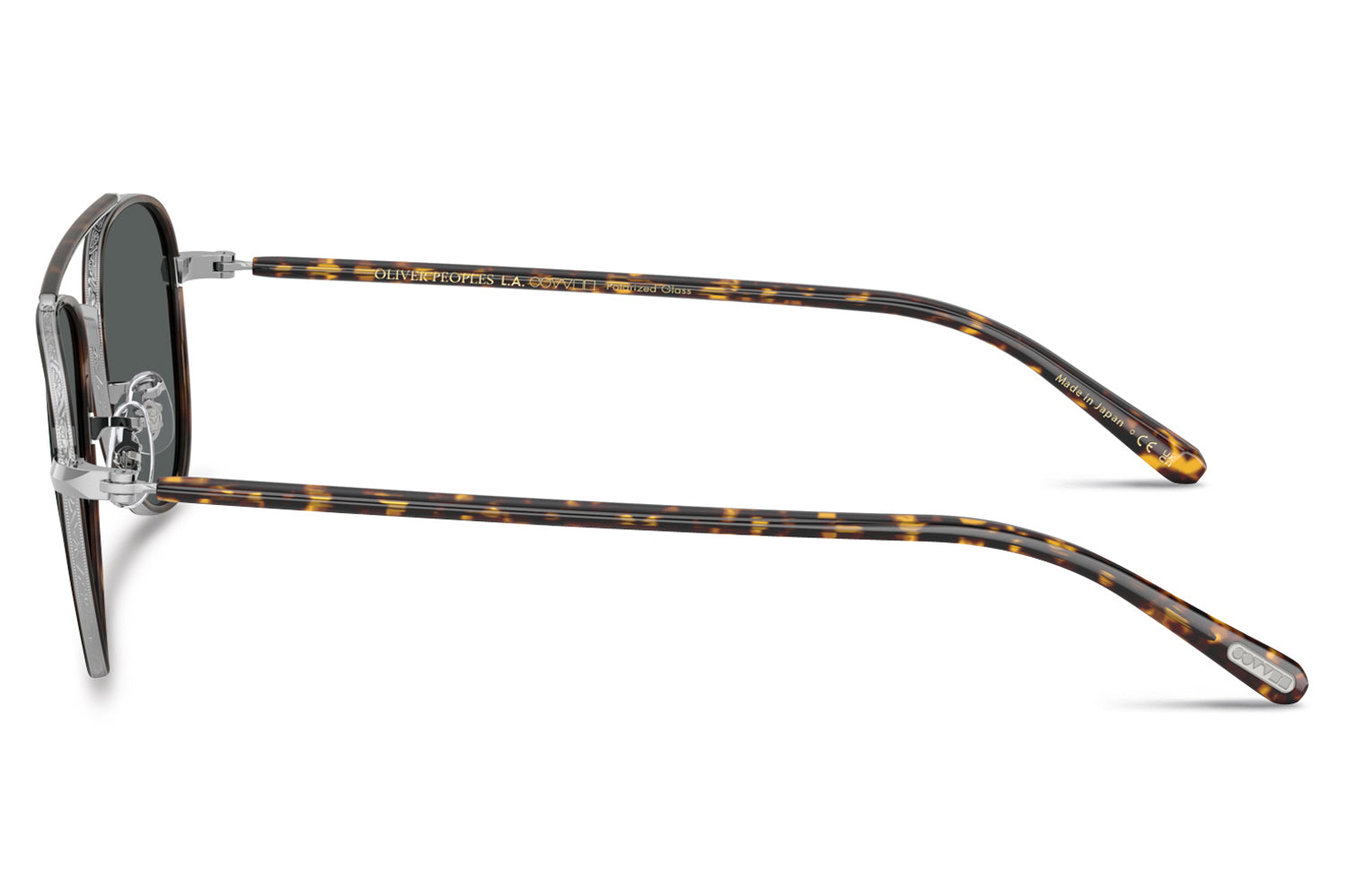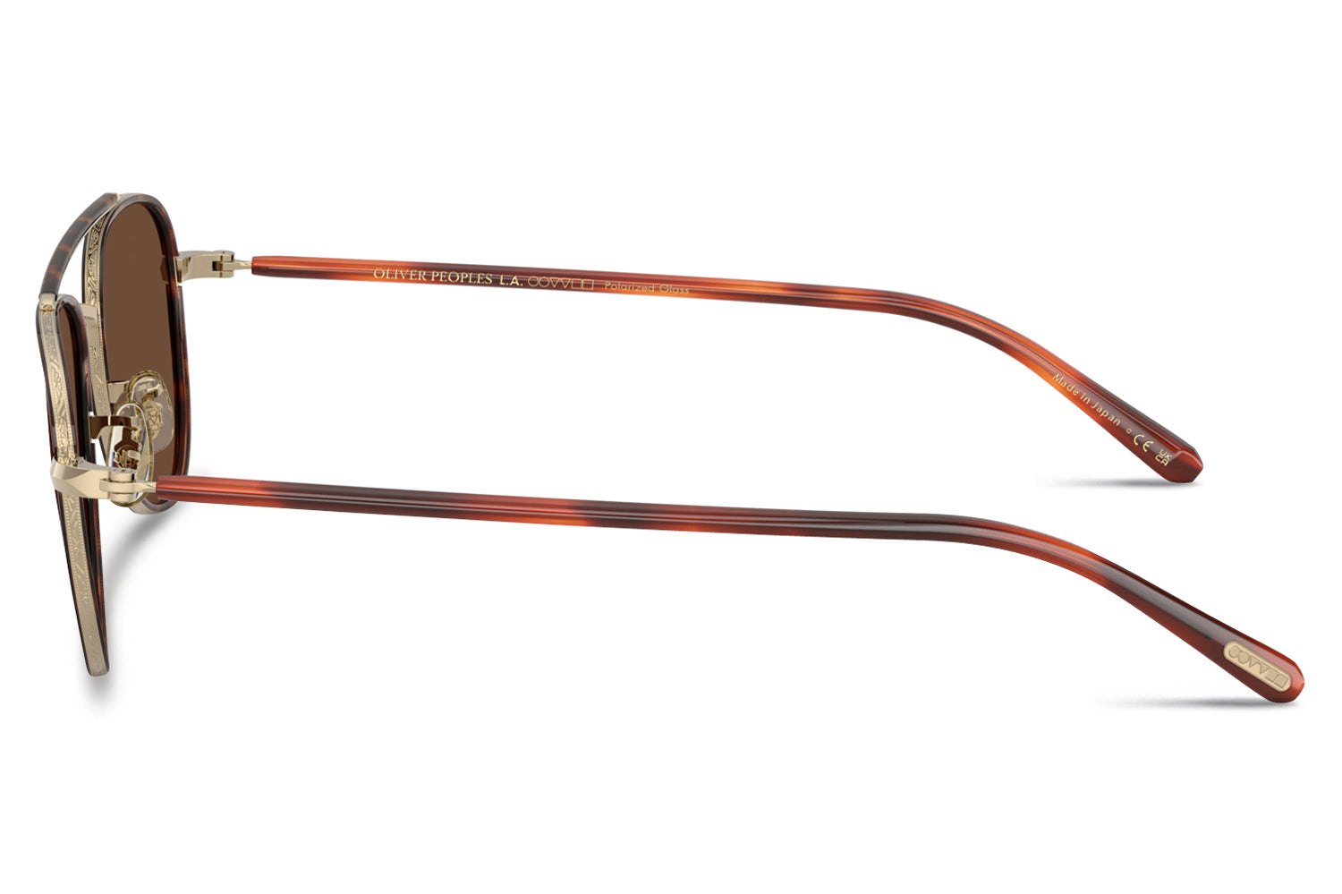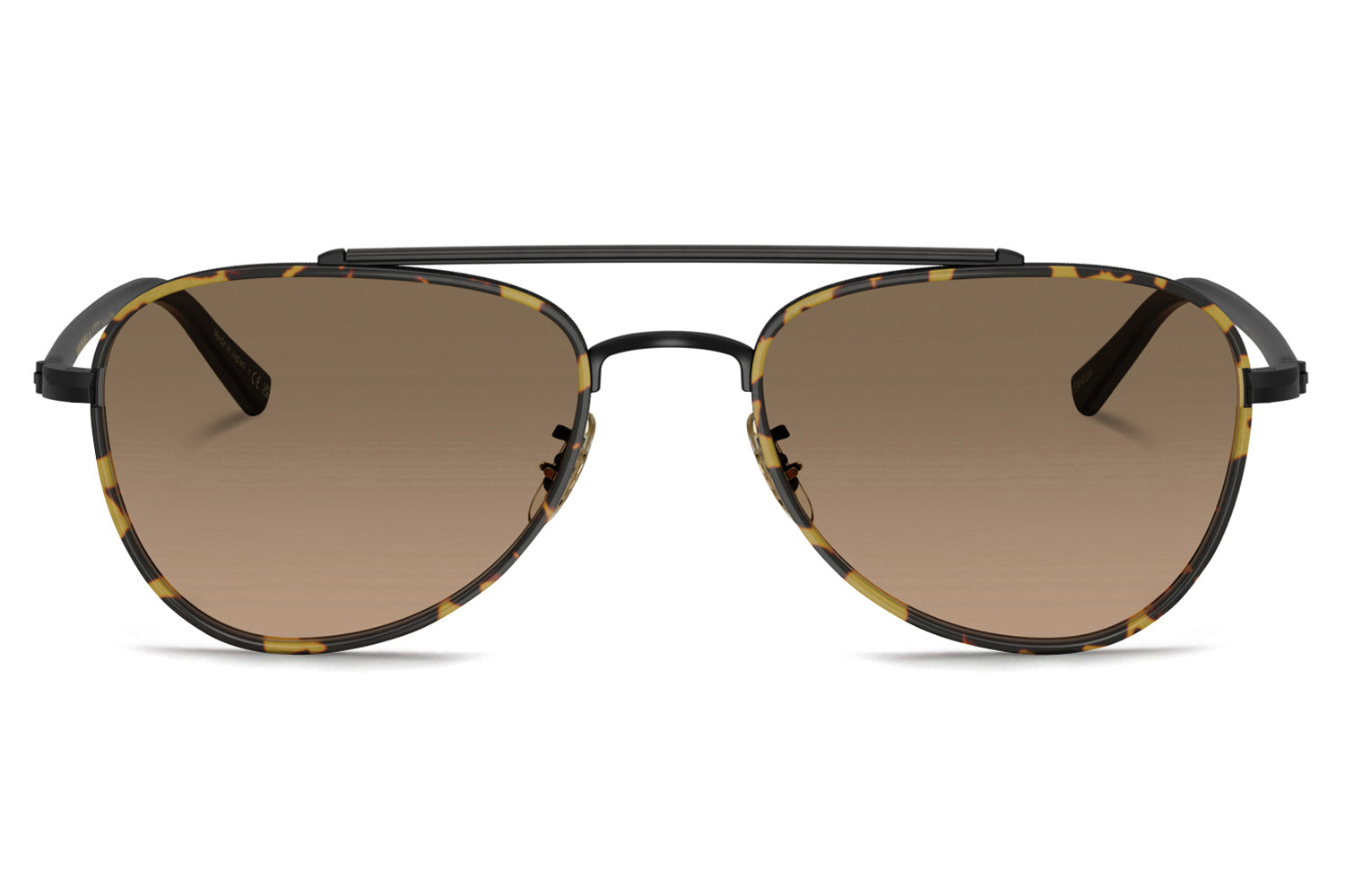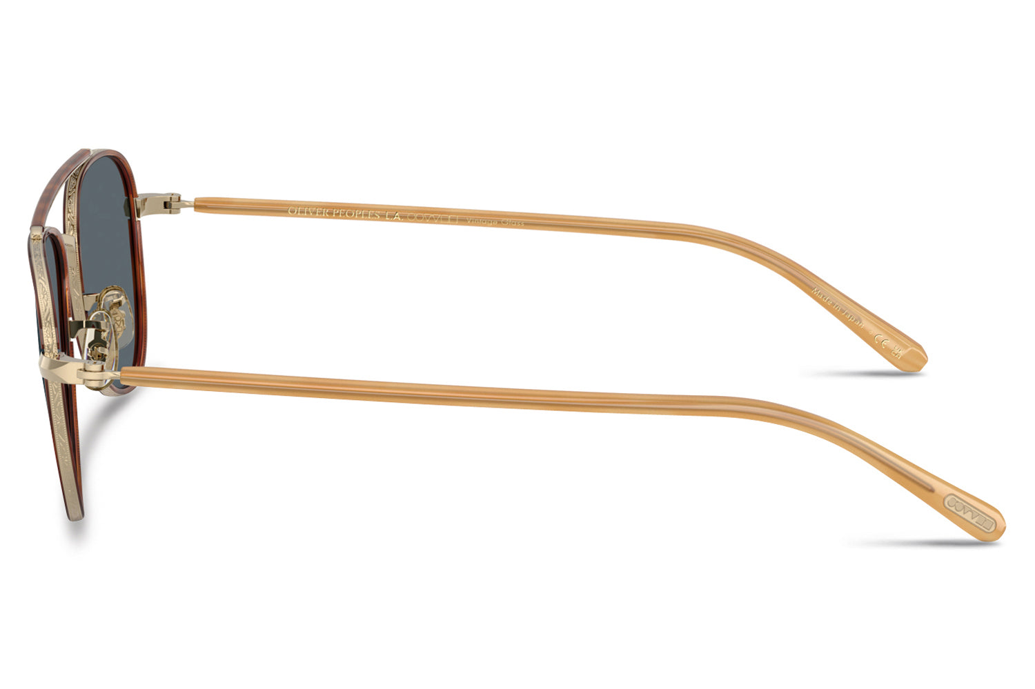 The Oliver Peoples // Sacoye (OV1372ST) is a teardrop titanium and acetate sunglass with a distinctive double-bar brow and rich tortoise accents. Born from Japanese craftsmanship, the thin acetate insert eyewire, tortoise-accented top bar, and refined acetate temple deliver an elegantly tailored, heritage-inspired silhouette. Lightweight titanium and premium acetate construction ensure enduring comfort and refined wear. These designer sunglasses blend classic aviator heritage with artisanal precision, perfect for the discerning wearer seeking a beautifully crafted, tailored elegance. Includes Oliver Peoples box, case, cleaning cloth, and 1-year manufacturer warranty.