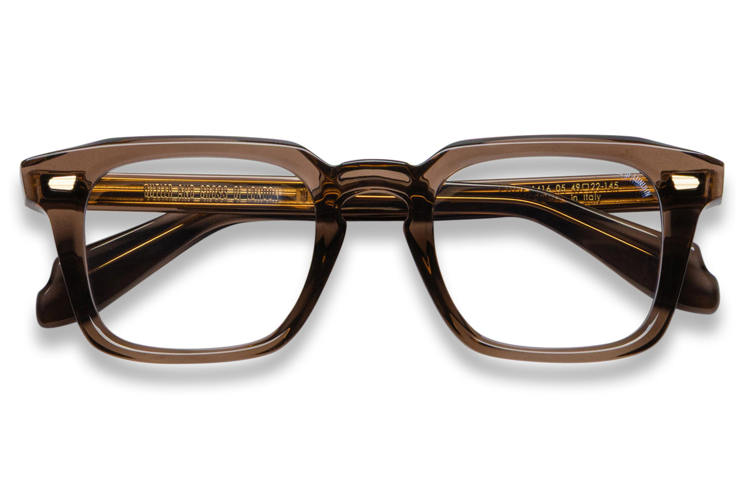The Cutler and Gross // 1416 is a refined frame that seamlessly blends heritage with modern craftsmanship. Featuring polished oyster pins and a modernist core wire, both signature motifs of the brand, the 1416 exemplifies Cutler and Gross’s storied design legacy. The slim temples pay homage to the iconic eyewear styles favored by Truman Capote and Andy Warhol in the 1970s, offering a subtle nod to cultural icons. Handcrafted with precision, this frame embodies the timeless elegance and meticulous detail that define Cutler and Gross eyewear. Includes Cutler & Gross case, cleaning cloth, and 1-year manufacturer warranty.