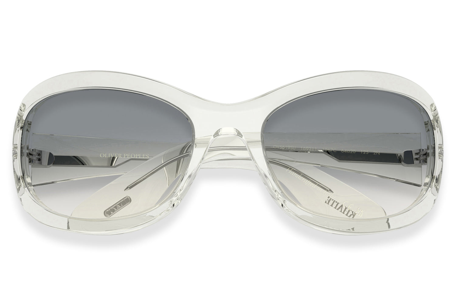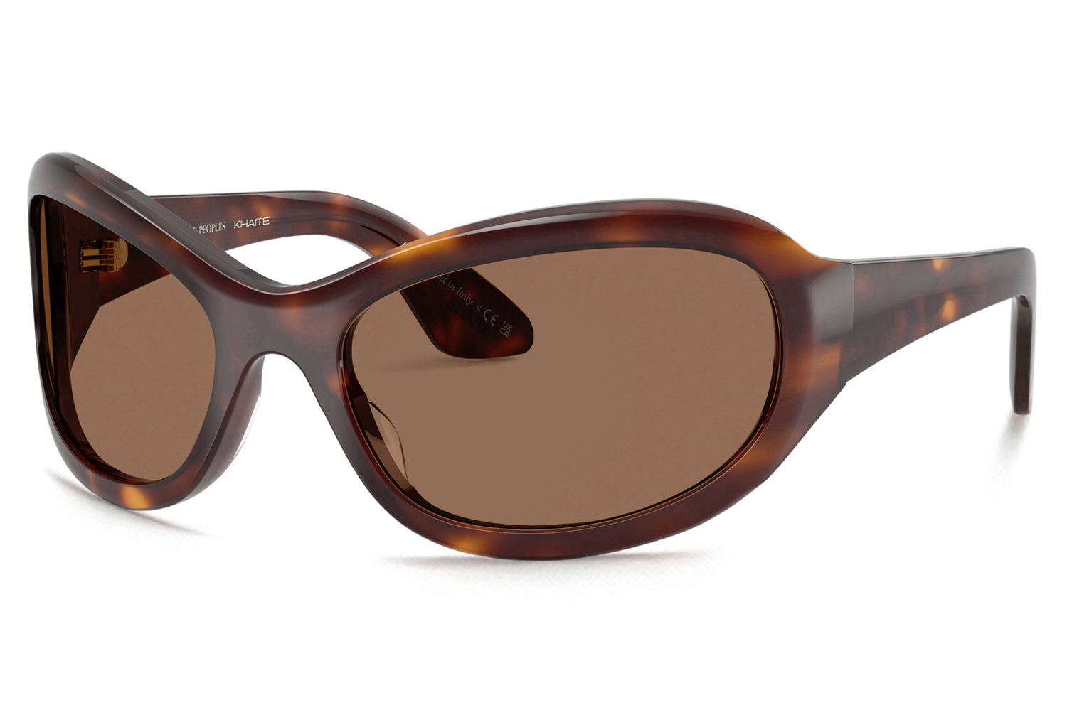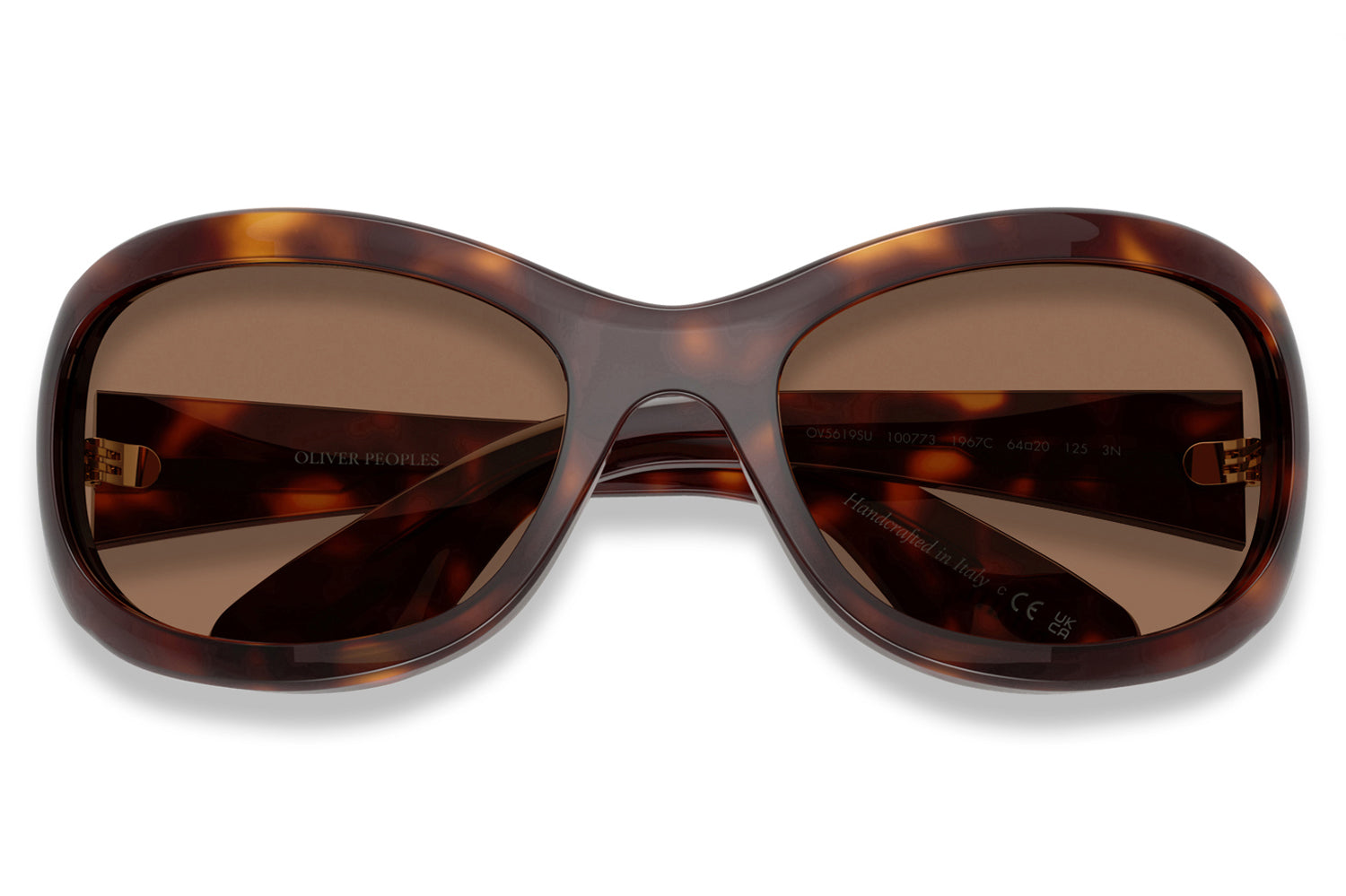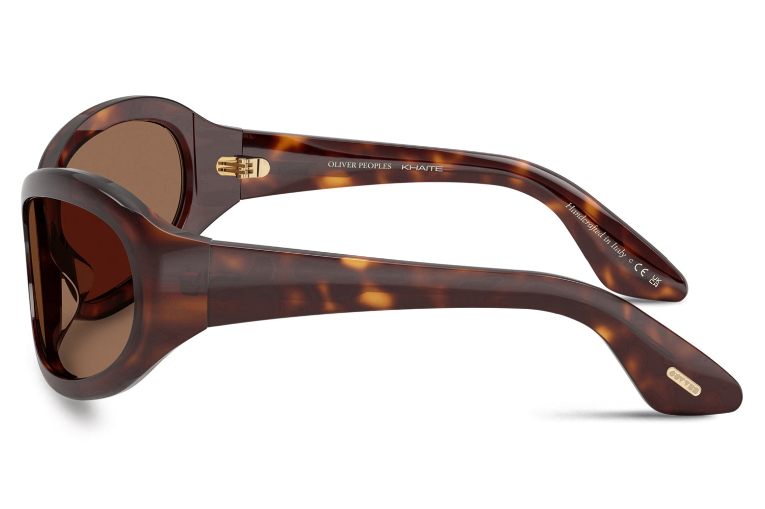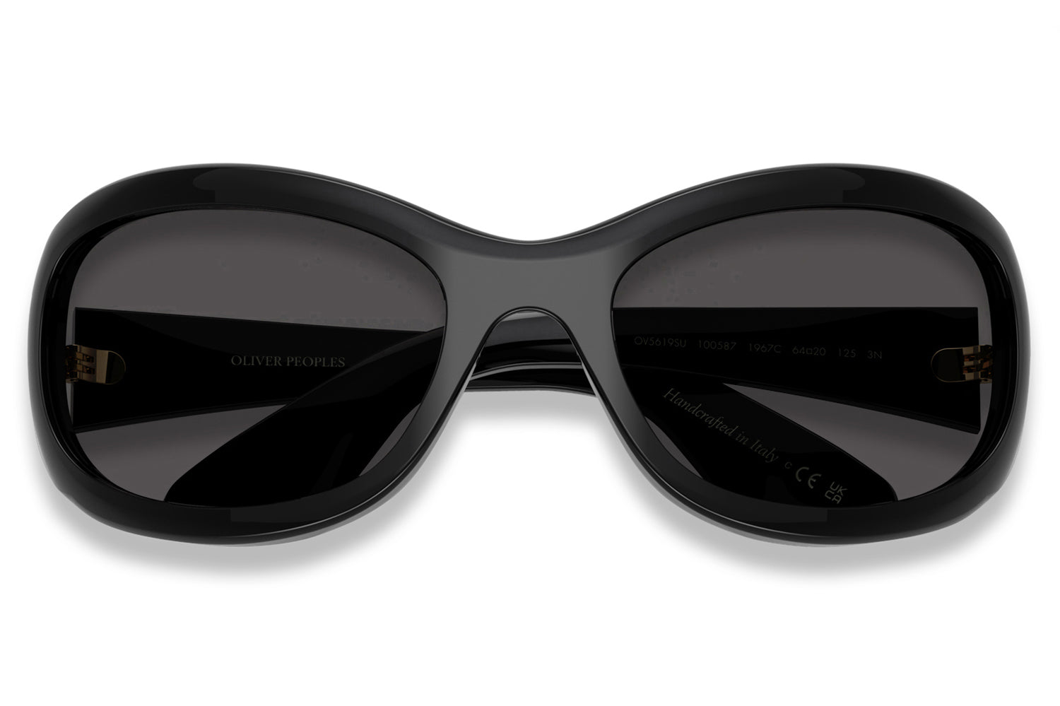 The Oliver Peoples // 1967C (OV5619SU) is a bold oversized wrapped acetate sunglass with a dramatically upswept, sculptural silhouette. Born from Italian handcraft and the exclusive Oliver Peoples x Khaite collaboration, the signature embedded corewire in the recognizable Khaite shape and logo plaque temple tip delivers an unmistakably fashion-forward, partnership-driven identity. Premium acetate construction ensures a commanding, lasting presence. These designer sunglasses blend avant-garde wraparound drama with exclusive collaboration detailing, perfect for the Khaite customer seeking a boldly expressive, statement-making sunglass. Includes Oliver Peoples box, case, cleaning cloth, and 1-year manufacturer warranty.