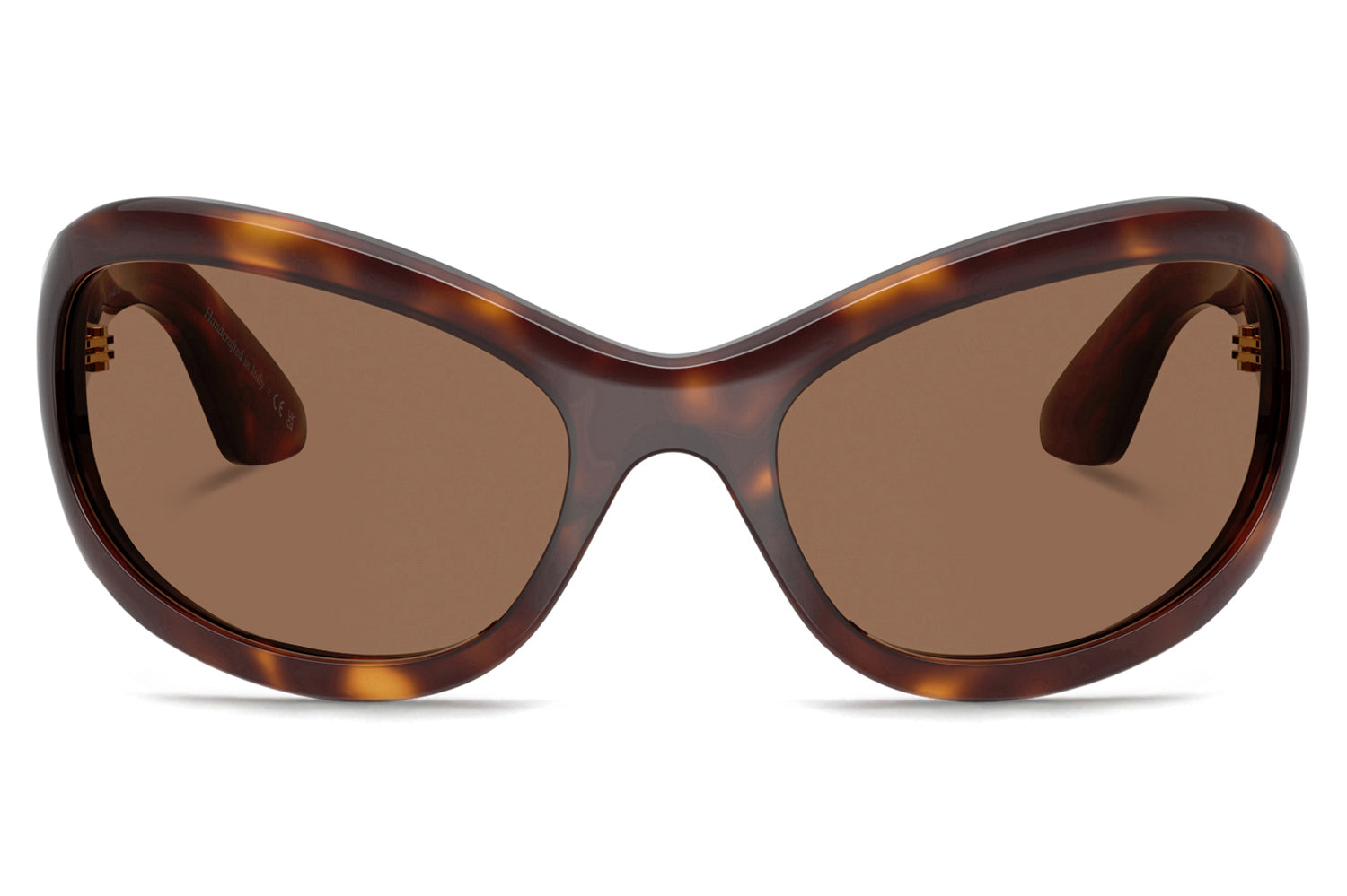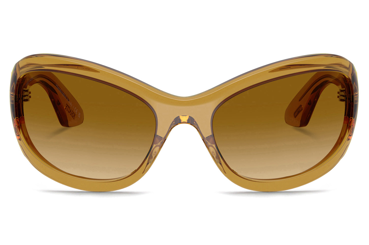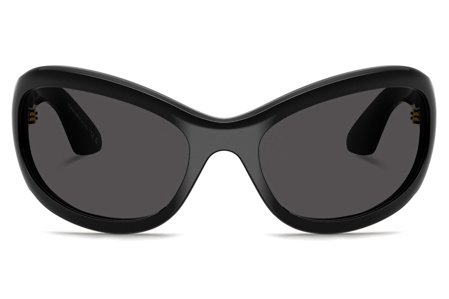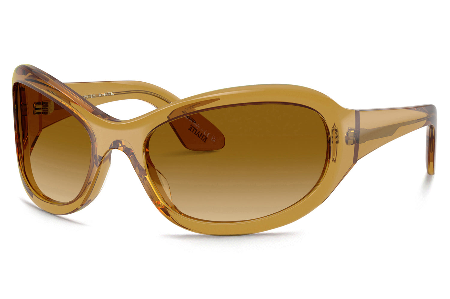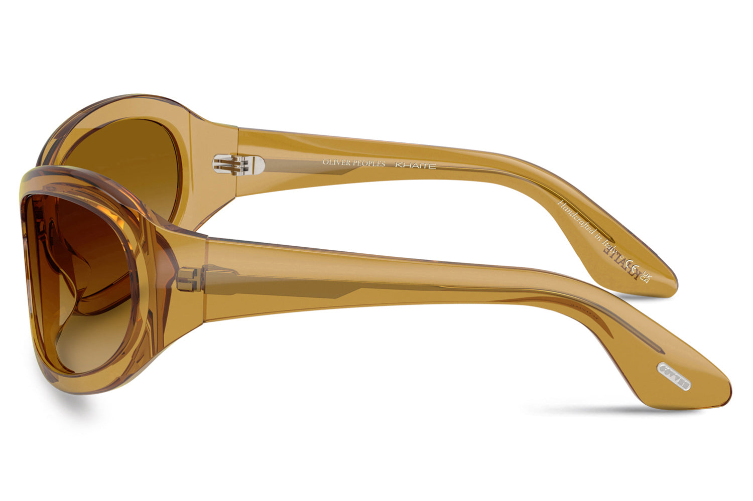 The Oliver Peoples // 1967C (OV5619SU) is a bold oversized wrapped acetate sunglass with a dramatically upswept, sculptural silhouette. Born from Italian handcraft and the exclusive Oliver Peoples x Khaite collaboration, the signature embedded corewire in the recognizable Khaite shape and logo plaque temple tip delivers an unmistakably fashion-forward, partnership-driven identity. Premium acetate construction ensures a commanding, lasting presence. These designer sunglasses blend avant-garde wraparound drama with exclusive collaboration detailing, perfect for the Khaite customer seeking a boldly expressive, statement-making sunglass. Includes Oliver Peoples box, case, cleaning cloth, and 1-year manufacturer warranty.