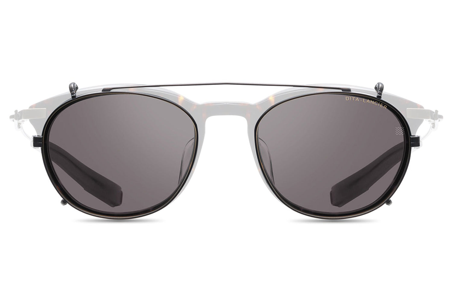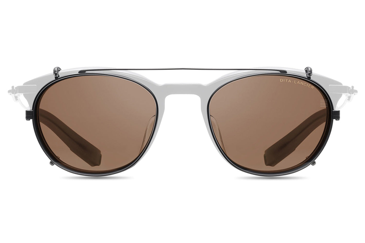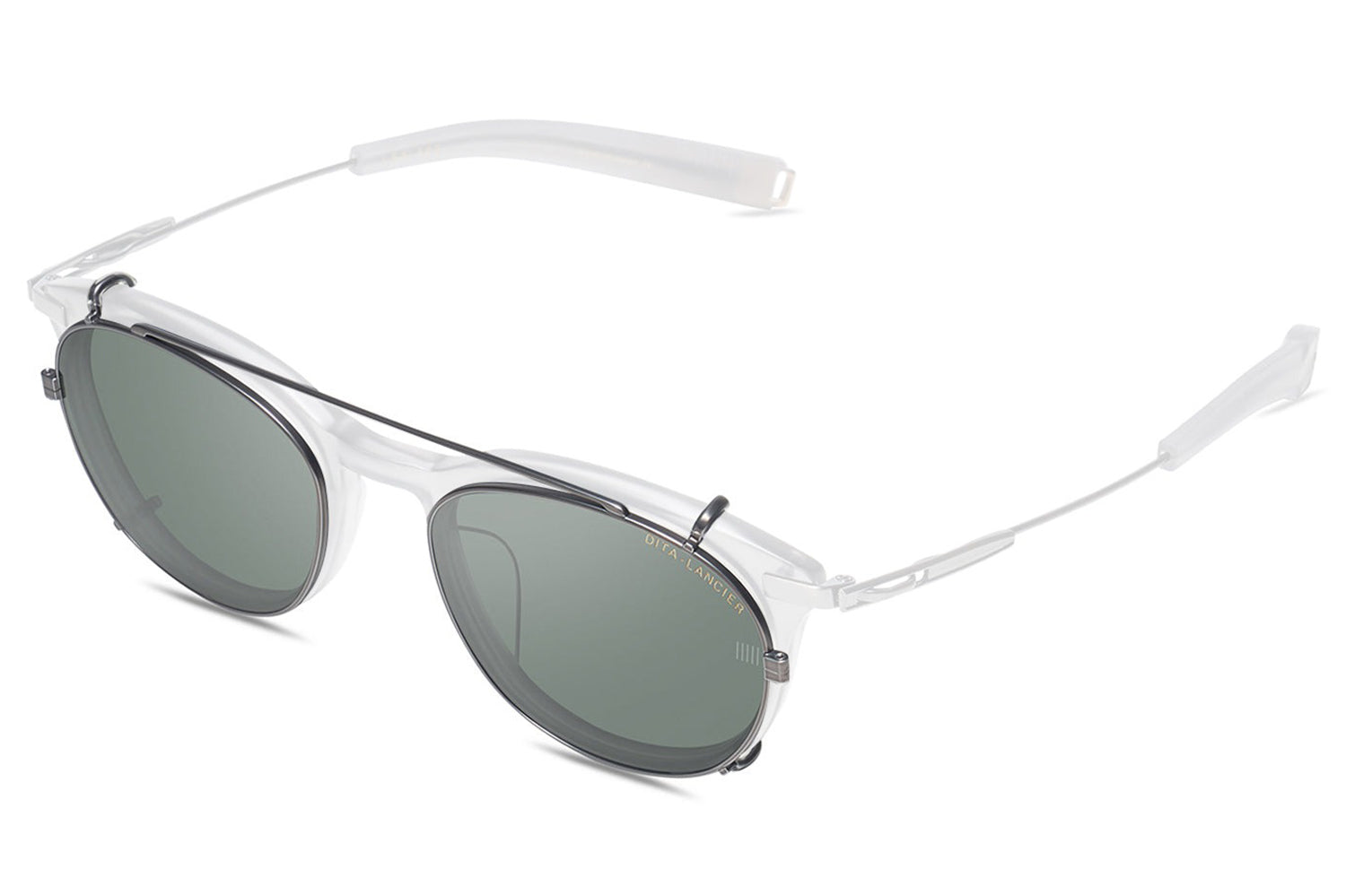 The Dita Lancier - LSA-402 Clip redefines versatility in premium eyewear. Engineered to pair precisely with the LSA-402 optical frame, this titanium clip-on attachment mounts securely over the round acetate chassis, transforming a refined optical frame into a complete DITA-Lancier sunglasses solution in a single, considered motion. A titanium double bridge bar crowns the assembly with signature architectural detail. Proprietary lenses deliver ultra-high-definition clarity with hydrophobic, anti-reflective coatings for demanding conditions. Made in Japan, this clip is available with luxury high-definition prescription lenses. Presented with the Dita Lancier box, case, and cleaning cloth.
