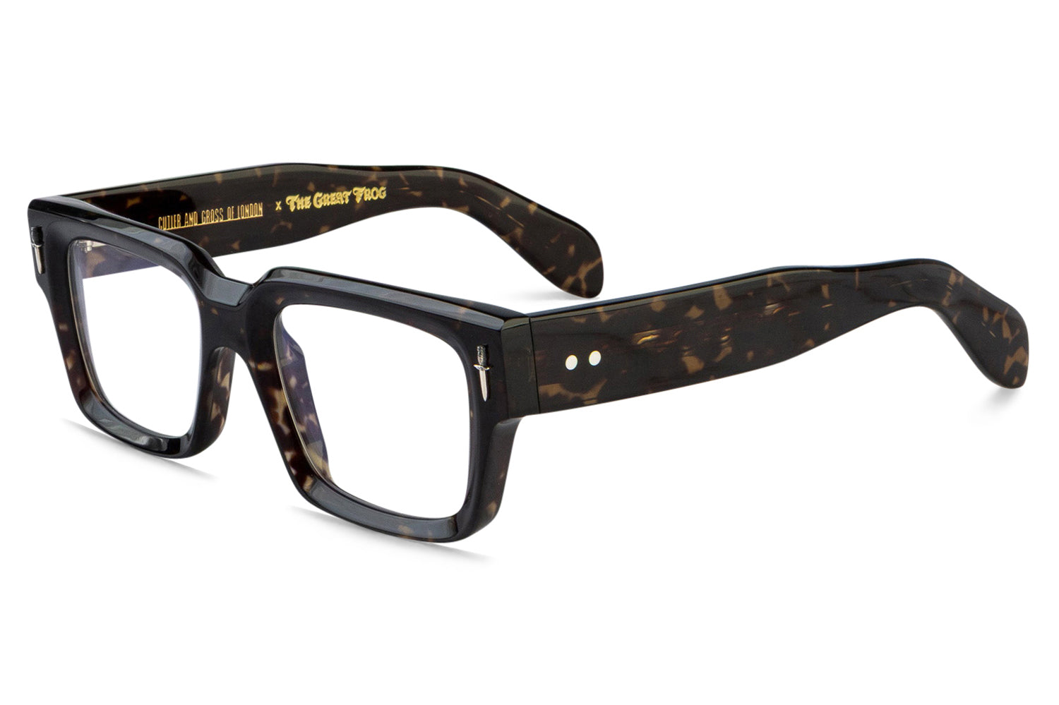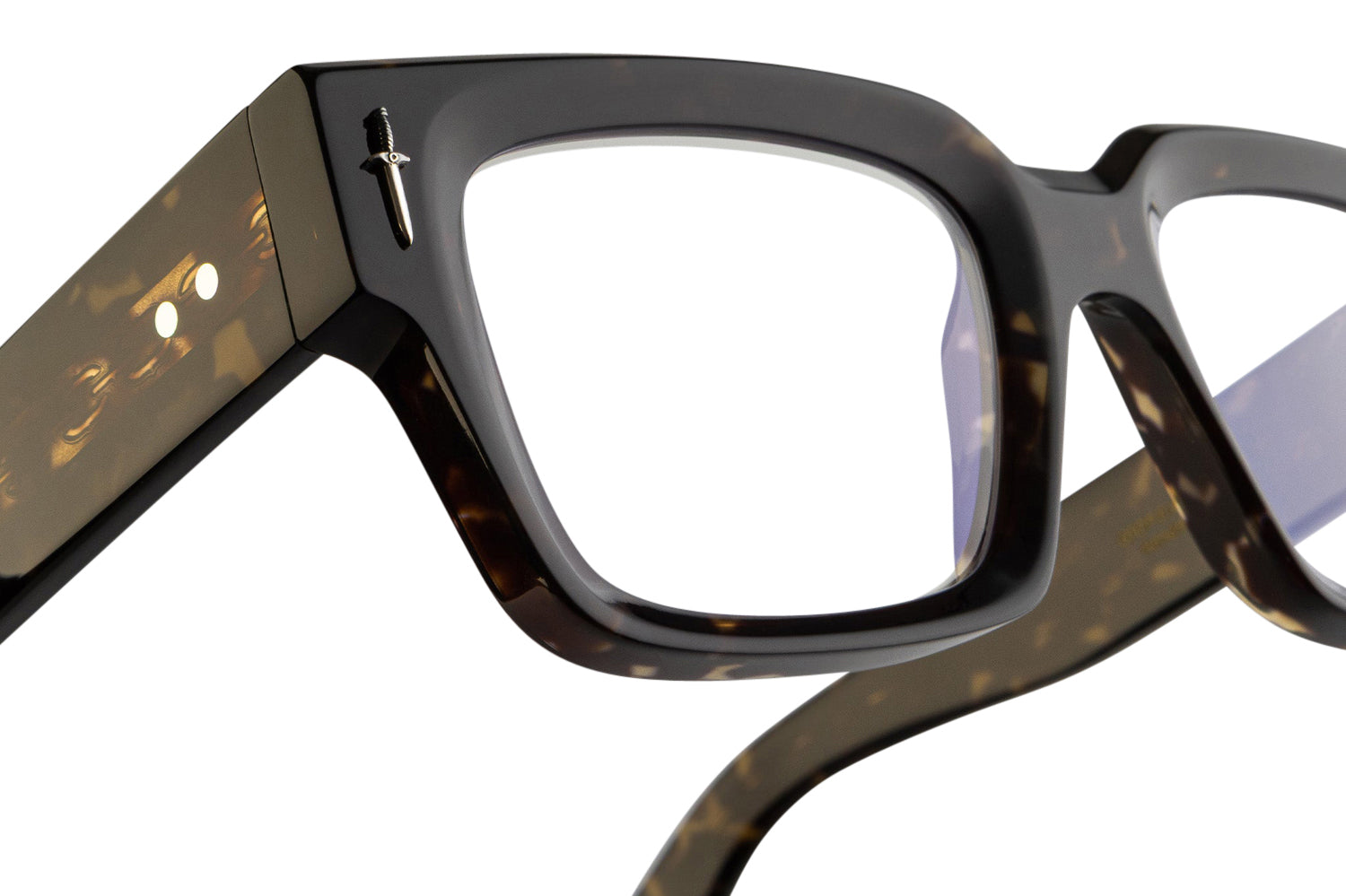 The Cutler and Gross X The Great Frog Titan features a hand-carved faceted profile with up-swept lugs that evoke the imagery of licking flames. This bold, rebellious frame, created in collaboration with the iconic rock’n’roll jeweler The Great Frog, is adorned with striking Sterling Silver Dagger pins. The result is a masterpiece of Gothic realism, combining both brands’ heritage of craftsmanship and artistry. Designed for those who embrace a defiant, edgy aesthetic, this frame merges powerful style with intricate detailing for a truly standout look. Includes Cutler & Gross case, cleaning cloth, and 1-year manufacturer warranty.