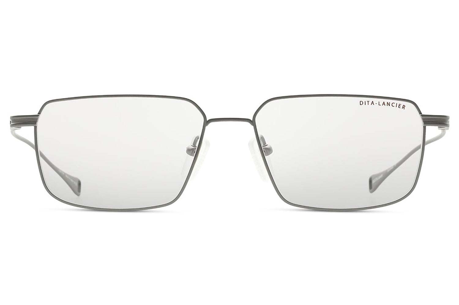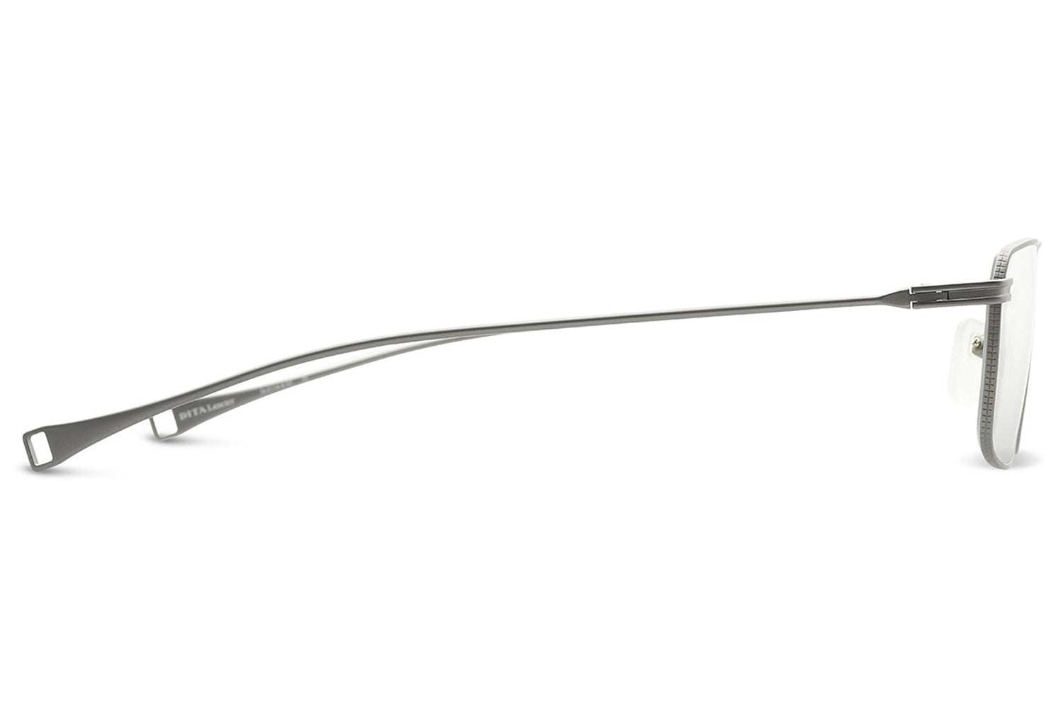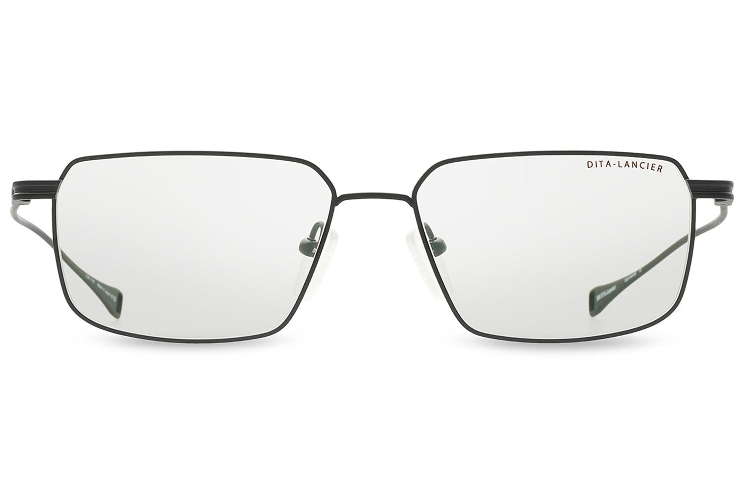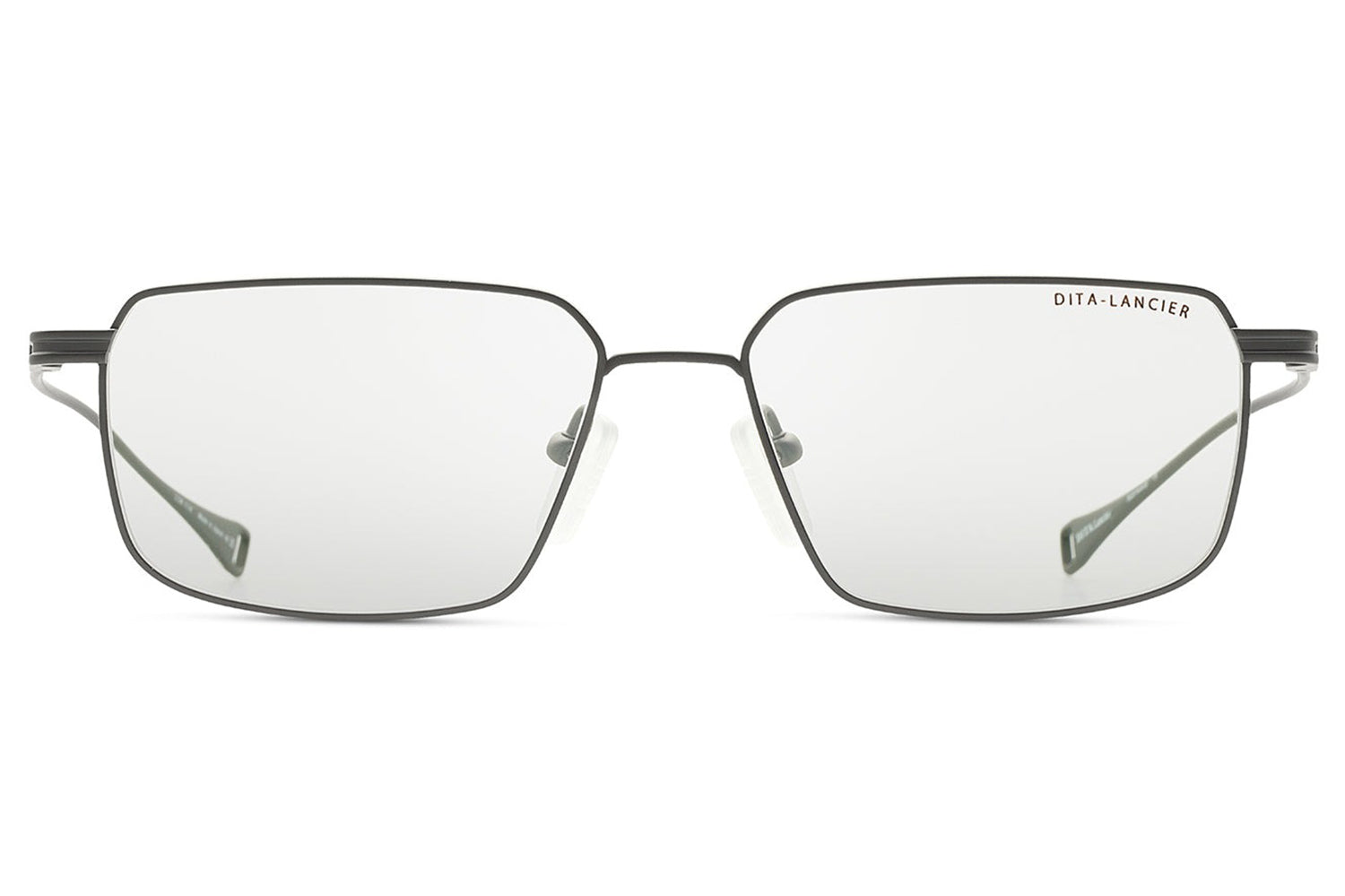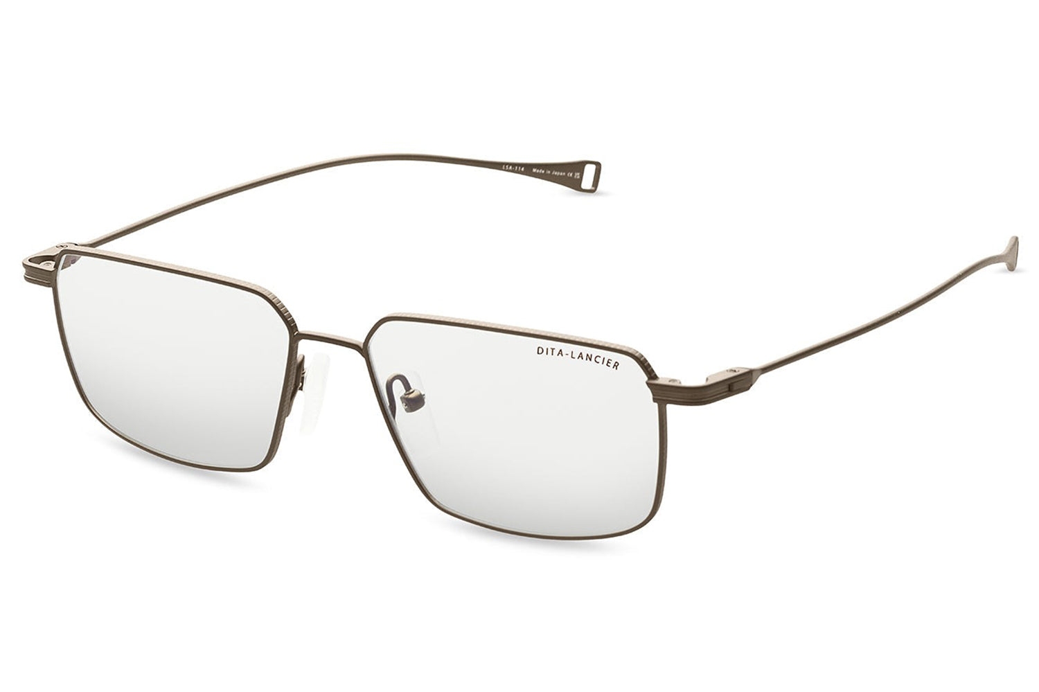 The Dita Lancier - LSA-114 is a titanium optical design distilled to its essentials. A wide rectangular silhouette in ultra-fine titanium wire, its clean geometry is refined by coin-pressed relief along the lens rim, precise, considered, and entirely intentional. The low-profile bridge keeps the frame honest, while swaged temples taper from round to flat with integrated end-tips. Adjustable soft-touch nose pads complete a frame of quiet authority. This DITA-Lancier optical, made in Japan, is available with luxury high-definition prescription lenses. Presented with the Dita Lancier box, case, and cleaning cloth.