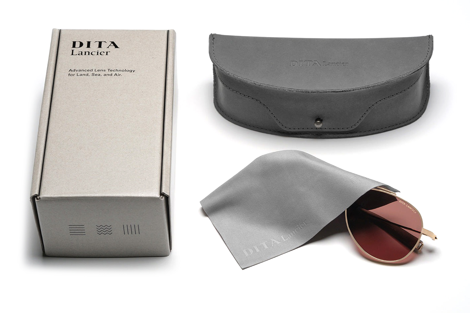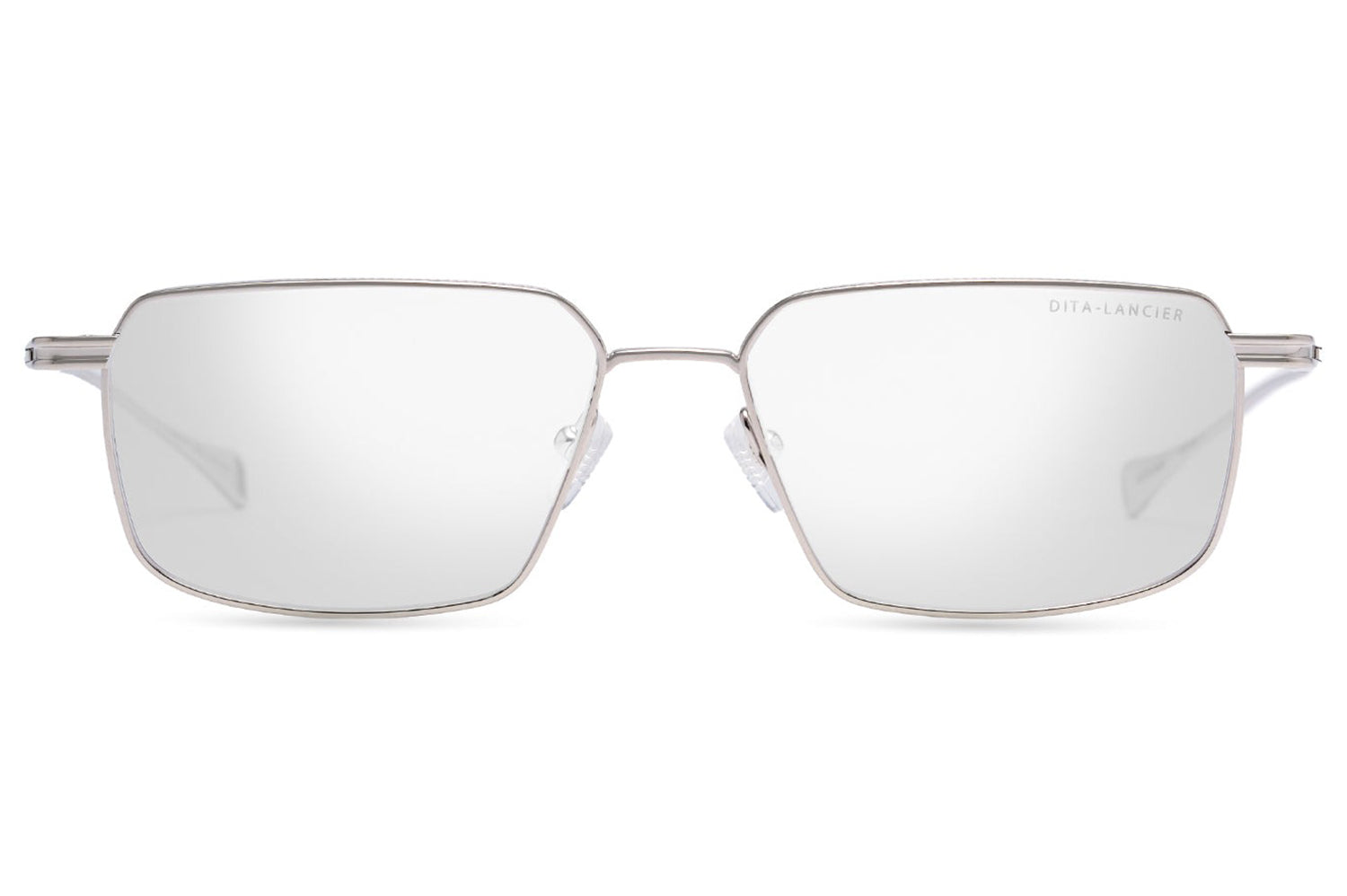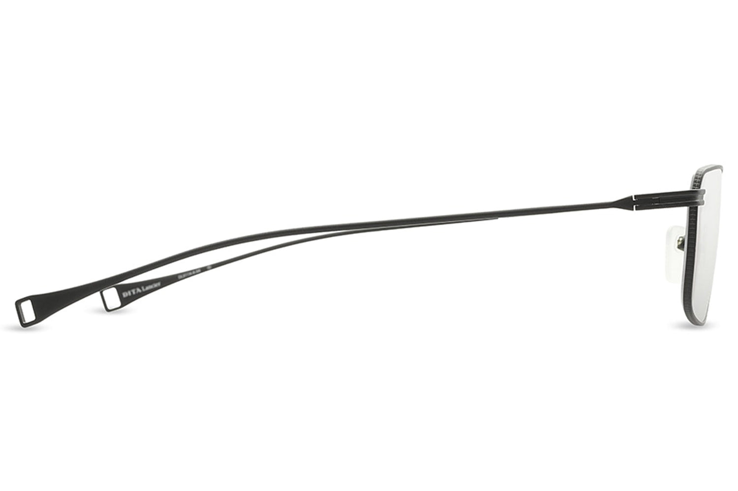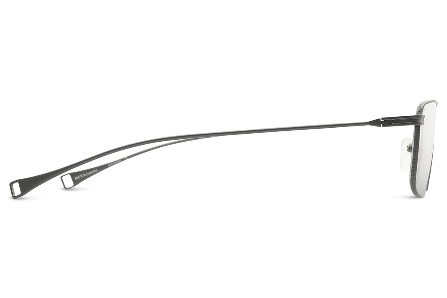 The Dita Lancier - LSA-114 is a titanium optical design distilled to its essentials. A wide rectangular silhouette in ultra-fine titanium wire, its clean geometry is refined by coin-pressed relief along the lens rim, precise, considered, and entirely intentional. The low-profile bridge keeps the frame honest, while swaged temples taper from round to flat with integrated end-tips. Adjustable soft-touch nose pads complete a frame of quiet authority. This DITA-Lancier optical, made in Japan, is available with luxury high-definition prescription lenses. Presented with the Dita Lancier box, case, and cleaning cloth.