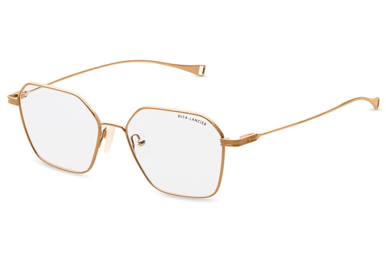 The Dita Lancier - LSA-116 makes a considered statement through geometry. An oversized hexagonal silhouette in ultra-fine titanium wire, its six clean facets create an expansive frame with genuine presence, bold in proportion, precise in execution. Coin-pressed relief along the lens rim brings tactile depth without disrupting the form. Swaged temples taper elegantly to integrated end-tips, reflecting the Japanese craftsmanship behind every DITA-Lancier optical frame. Made in Japan, and available with luxury high-definition prescription lenses. Presented with the Dita Lancier box, case, and cleaning cloth.