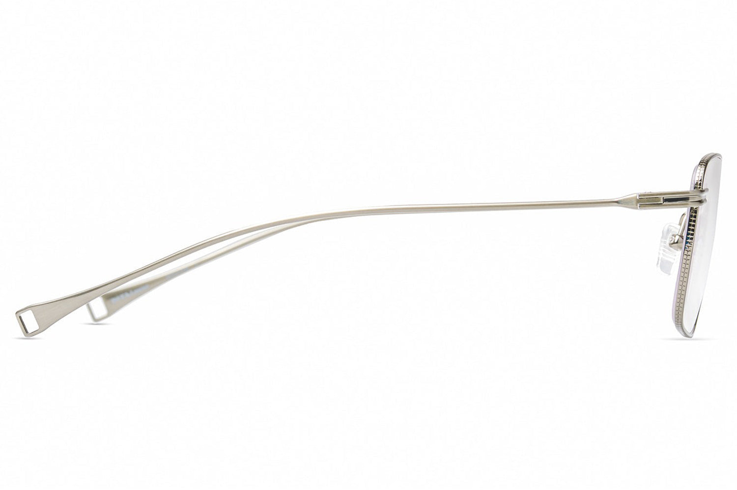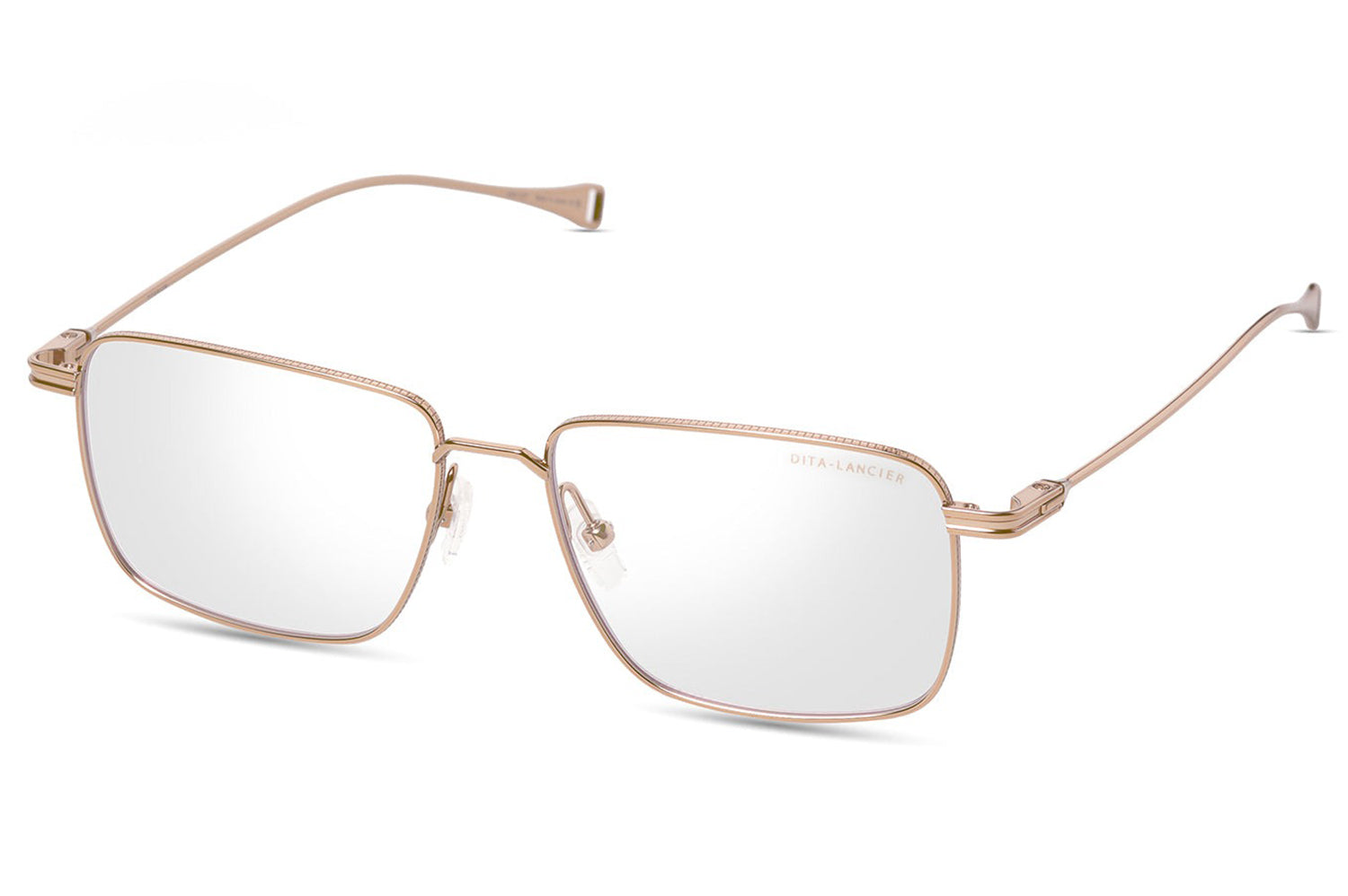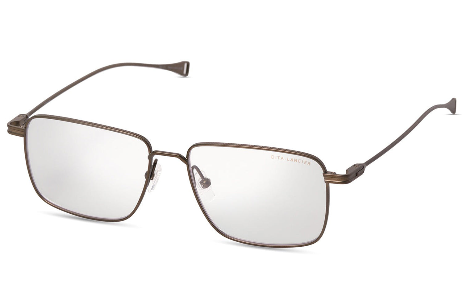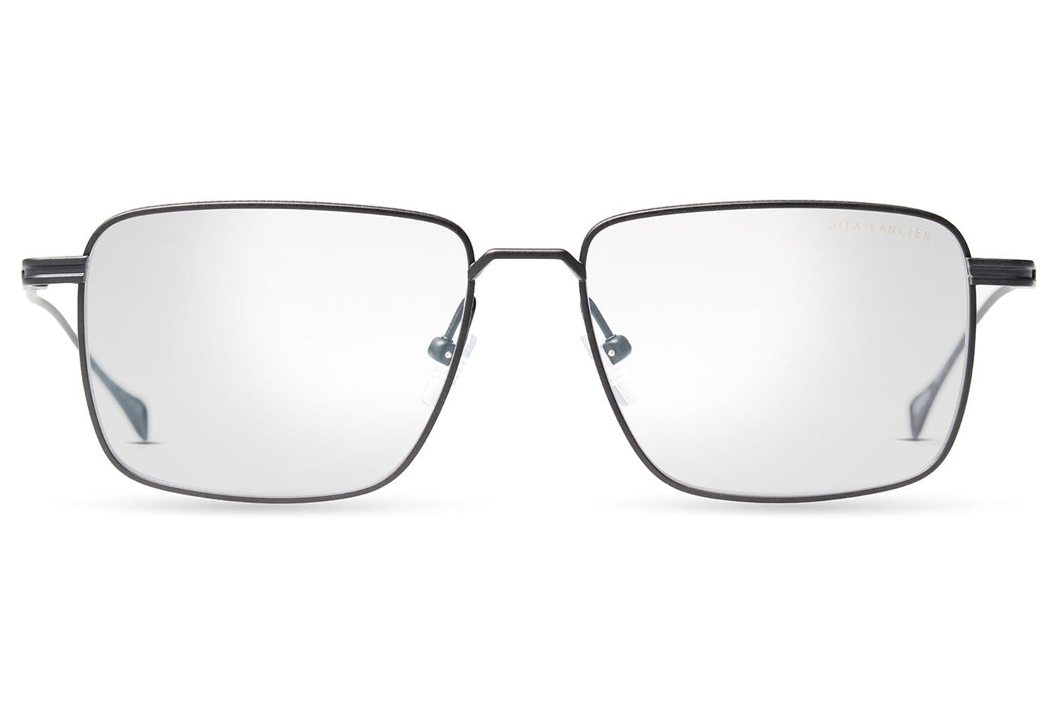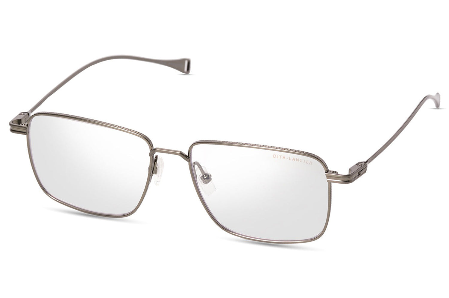 The Dita Lancier - LSA-127 makes its presence felt through scale and structure. An oversized square silhouette in fine titanium, its pronounced upper rim carries coin-pressed relief that elevates the frame's architecture from detail to defining feature. Large, softly cornered lenses deliver an expansive field of view while the clean single bridge keeps the geometry uncluttered. Swaged temples taper to integrated end-tips with characteristic precision. This DITA-Lancier optical, made in Japan, is available with luxury high-definition prescription lenses. Presented with the Dita Lancier box, case, and cleaning cloth.