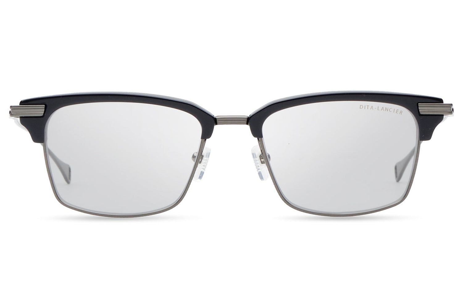 The Dita Lancier - LSA-439 is a browline optical frame of considered authority. A Japanese acetate brow sits above a full titanium lower frame, its coin-pressed detail adding tactile refinement to a construction that is both heritage-informed and precisely engineered. The contrast between the solid acetate brow and the titanium frame below speaks to a design language built on material dialogue. Swaged titanium temples taper to integrated end-tips. This DITA-Lancier optical, made in Japan, is available with luxury high-definition prescription lenses. Presented with the Dita Lancier box, case, and cleaning cloth.